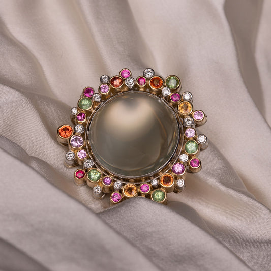30 carat Moonstone, Sapphire, Garnets & Diamond Platinum Ring