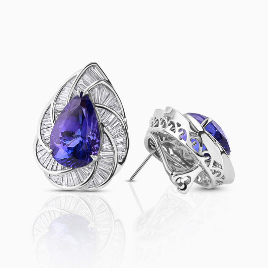 21 Carat Pear Shape Tanzanite & Diamonds Earrings