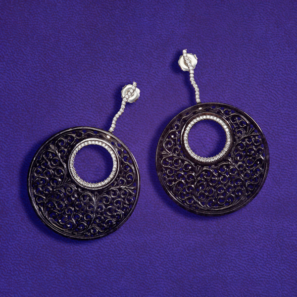 Embrace understated elegance with our Black Jade Diamond Earrings, crafted with untreated black jade set in platinum and adorned with brilliant diamonds. These earrings bring timeless charm and versatility, effortlessly transitioning from day to night. Whether worn alone or paired with other jewelry pieces, these earrings add a touch of refinement to any look.