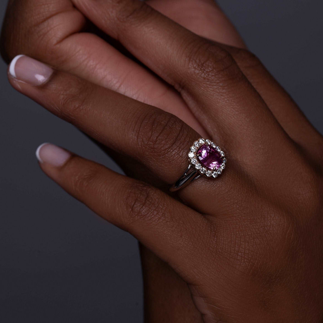 Intense Pink Sapphire & Diamonds Platinum Ring